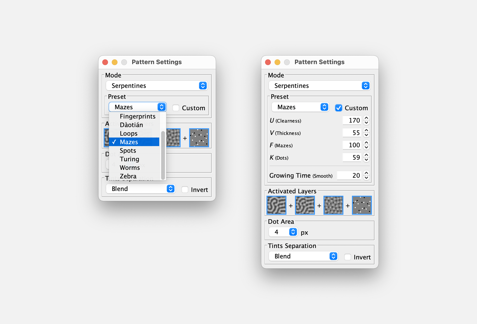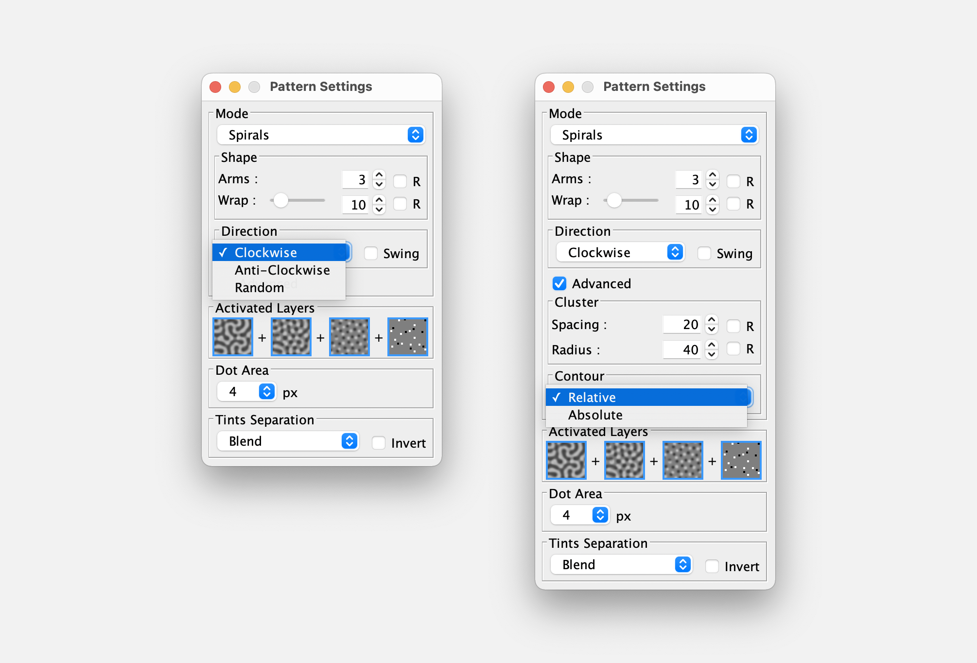 2.2 Fenêtre Pattern Settings – Mode Spirals