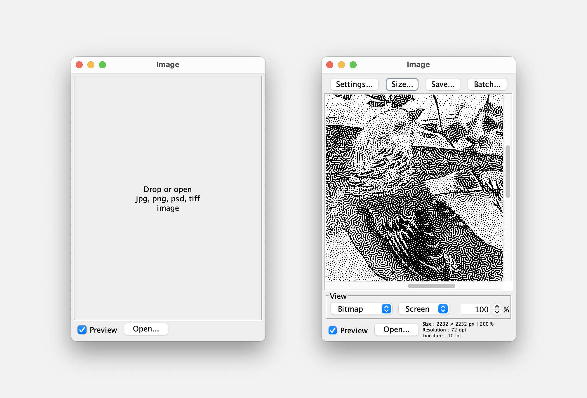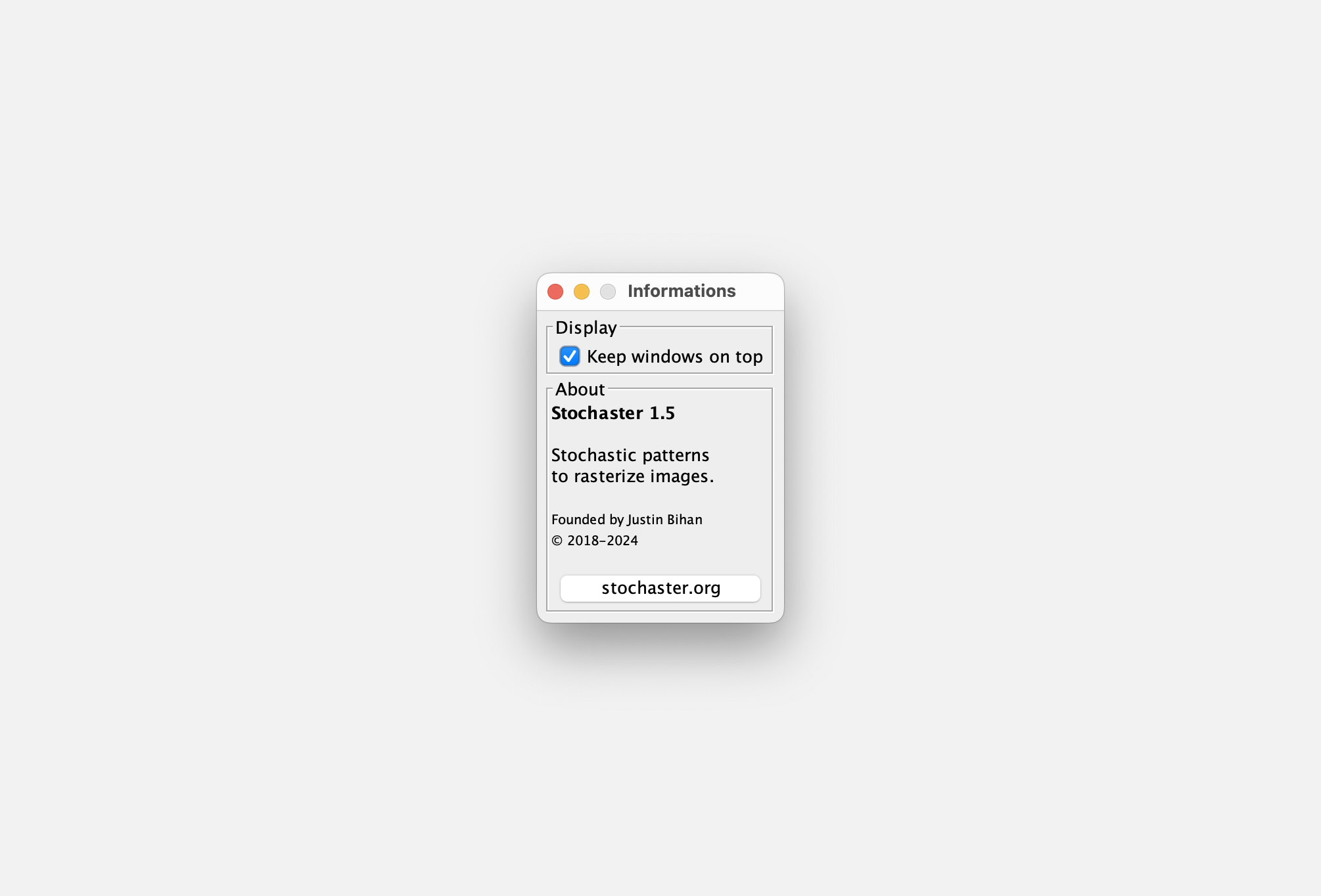 Stochaster est un logiciel qui vous permet de générer des motifs stochastiques personnalisables pour tramer vos images